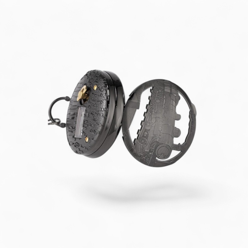 La Montre à Gousset Musicale Château Céleste est bien plus qu'une simple montre. C'est une immersion dans un monde où l'élégance rencontre l'ingéniosité. En prenant en main cette montre, on ressens instantanément la classe vintage qu'elle incarte, rehaussée par un motif de train à vapeur en relief qui semble tout droit sorti d'un roman d'aventure. Le cadran blanc contraste avec la structure noire, et les chiffres arabes s'ajoutent à sa dimension intemporelle.